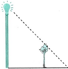 7. 创新题 | 路灯下,小树与影的长度相等,都是 2 m,量得小树与路灯相距 3 m。路灯有多高?(灯泡的高度忽略不计)