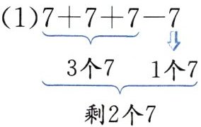 思路分析 (1)$\underbrace{7 + 7 + 7}_{3个7} - \underbrace{7}_{1个7}$ 剩2个7