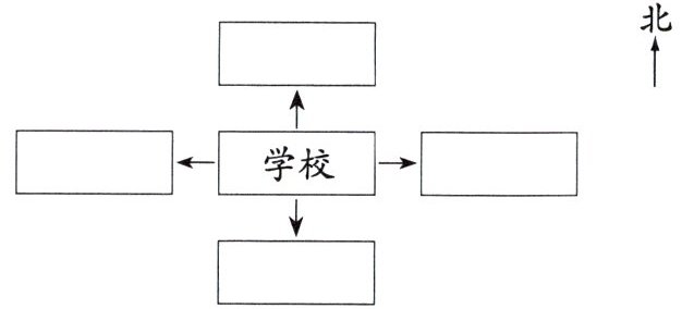 学校的北面是文具商店,超市在学校的南面,医院在学校的东面,学校的西面是邮局。