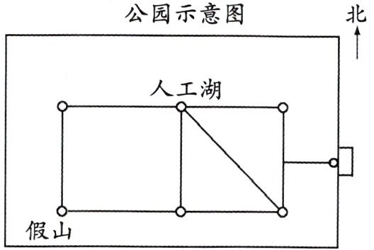 (2) 温室在人工湖的南面,小树林在温室的东面,小树林的北面是饭店。
