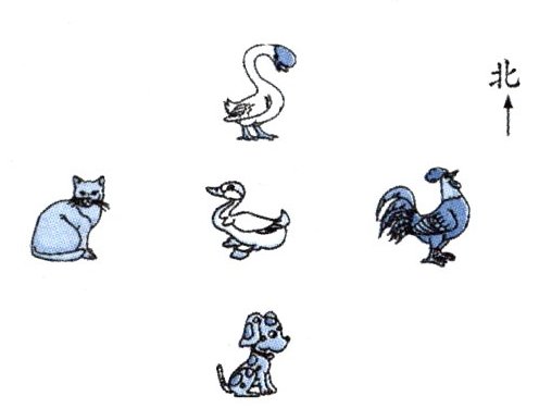 )面,公鸡在鸭子的(东