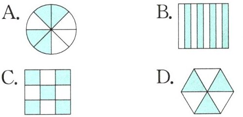 1. 下面各图中的涂色部分不能用 0.5 表示的是(