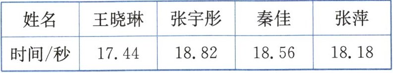 3 生活运用题|四年级的 4 名同学参加女子 4×100 米接力比赛,她们所用的时间如下表。你能很快算出这 4 名同学完成接力比赛的总时间吗?