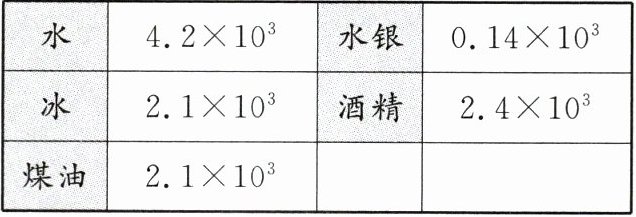| 水 | $ 4.2×10^{3} $ | 水银 | $ 0.14×10^{3} $ |