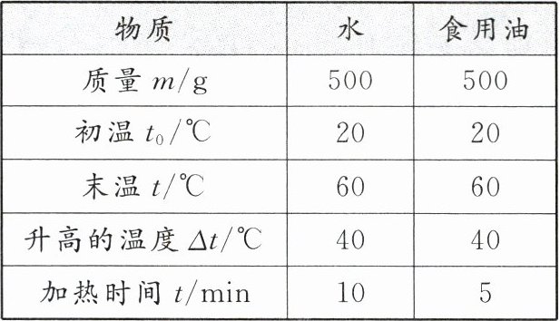 (5)实验结论:对质量相同的水和食用油加热,使它们升高相同的温度,对水加热需的时间更