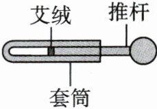 5. 【传统文化】(雅安市中考)如图是我国古代发明的取火器模型图,把推杆迅速推入牛角套筒时,套筒内空气被压缩,推杆前端的艾绒立刻燃烧起来,此过程中机械能转化为