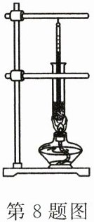 8. 【科学推理】实验小组的同学们想利用如图所示装置探究“不同物质的吸热能力”,取来如下材料:相同的试管两支、酒精灯、水、沙子、温度计和天平。同学们发现取来的材料中还缺少