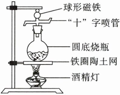 铜质喷管、球形磁铁、圆底烧瓶、酒精灯、陶土网、铁架台。