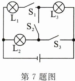 )A.只闭合开关 $ S_1 $ 时,灯 $ L_1 $、$ L_3 $ 并联