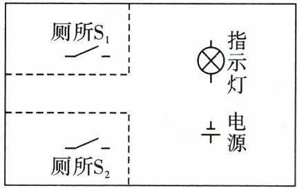 9.(开关串联型)小满暑假坐火车去北京,在火车上发现车厢后面有两个厕所,只有当两个厕所的门都关上时,车厢指示灯才会发光,指示牌才会显示“厕所有人”字样,提醒旅客两个厕所内都有人。请你把图中的各元件符号连接成符合上述设计要求的电路图。