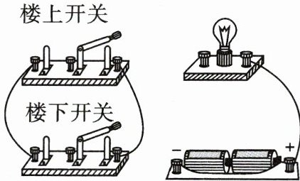 12.(双掷开关类型)如图所示是楼梯照明灯的模拟电路,它的要求是在楼梯的上下两端都能对灯进行控制。请在图上补画连接导线,使之符合这一要求。