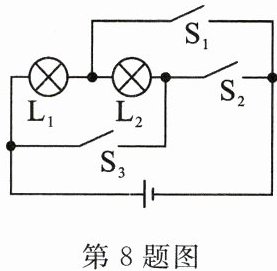 8. 下列操作能使图中的小灯泡 $ L_1 $ 和 $ L_2 $ 组成并联电路的是(