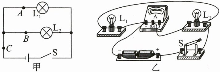 (1)图乙是该小组连接的电路,闭合开关$S$,电流表测通过