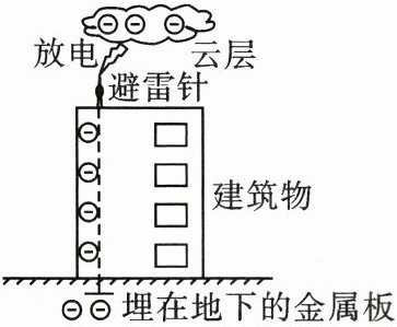 3.(广州市中考)如图,带负电的云层靠近建筑物上的避雷针时,向避雷针剧烈放电形成雷电,下列说法正确的是(