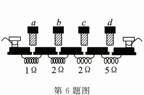 6. 如图为插孔式电阻箱结构示意图,要使连入电路的电阻为7Ω,应将铜塞插入插孔的是(