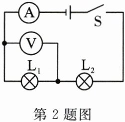 2. 如图所示,导线连接无误,闭合开关后两灯都不亮,电压表有示数且接近电源电压,电流表无示数,则其原因可能是(