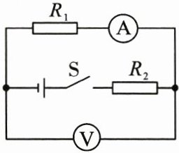14. 【科学推理】如图所示,两只电表及导线完好。闭合开关,两只电表示数均为零。现用一个完好的电阻替换$R_2,$再闭合开关: