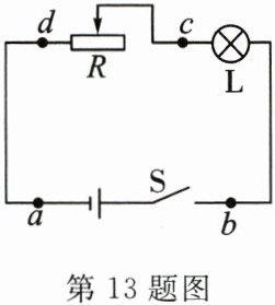 13. 如图所示,当开关S闭合时,小灯泡L不亮,小明同学利用电压表进行电路故障检测,检测结果如表所示。则电路中的故障可能是(