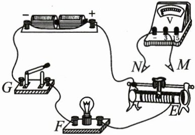 11. 如图,闭合开关,灯泡不亮。在闭合开关且不拆开导线的情况下,将M接电源“+”极,N依次试触E、F、G接线柱,发现电压表示数前两次为零,第三次接近3V。若故障只有一个,则可能是(