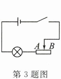 3. (吉林省中考)某调光台灯简化电路图如图所示,电源电压保持不变。为使台灯变亮,滑片应向