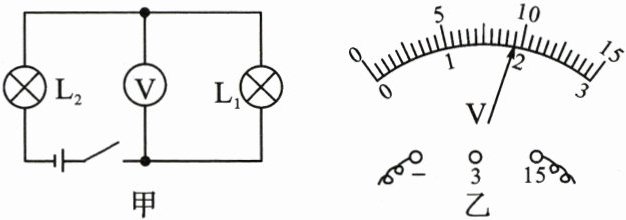 4. (湘西州中考改编)如图甲所示电路中,电压表测量的是灯泡