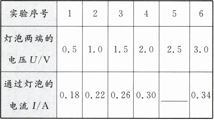 |灯泡两端的电压U/V|0.5|1.0|1.5|2.0|2.5|3.0|