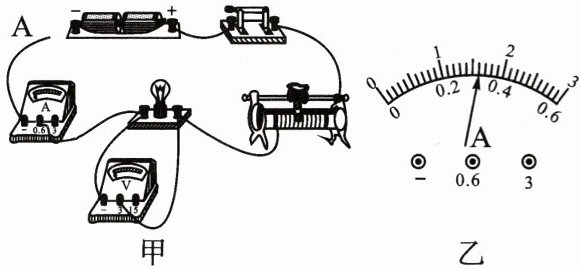 (3) 在实验过程中得到了如下表所示的U和I的数据,灯泡两端的电压为2.5V时,电流表的示数如图乙,请将读数填入表格中的空白处,此时小灯泡的电阻约是