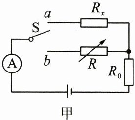 6. 用如图甲所示的电路可以测量一个未知电阻的阻值,其中 $ R_x $ 为待测电阻,$ R $ 为电阻箱,$ S $ 为单刀双掷开关,$ R_0 $ 为定值电阻。某同学用该电路进行实验,主要步骤有: