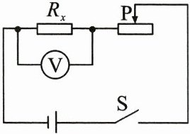 (1)将滑动变阻器的滑片 $ P $ 移到最左端,闭合开关 $ S $,读出电压表的示数,记为 $ U $。