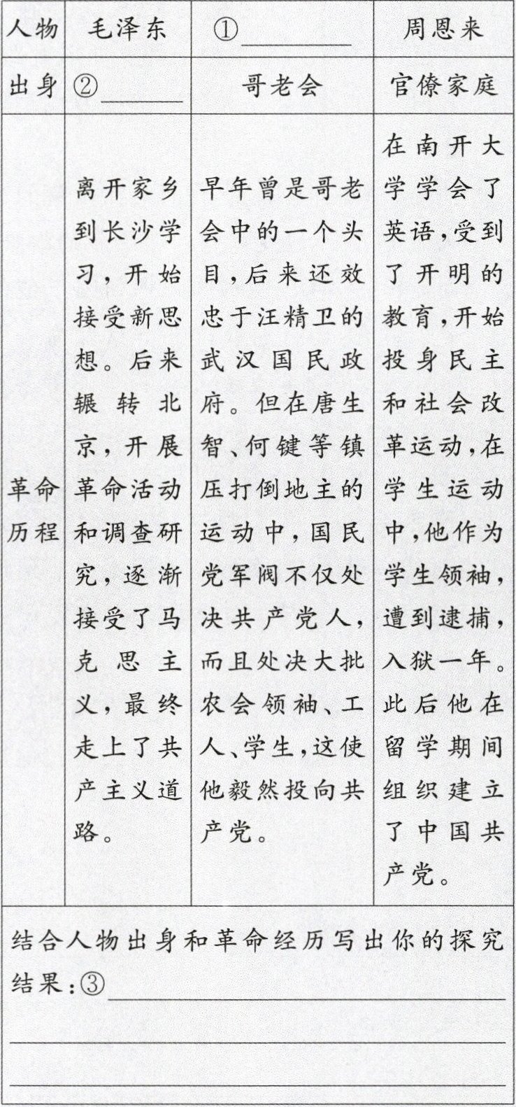 ①贺龙 ②农民 ③英雄不问出处,几位领导人虽然出身不同,所走过的道路不同,但是最终殊途同归,都走上了共产主义道路。