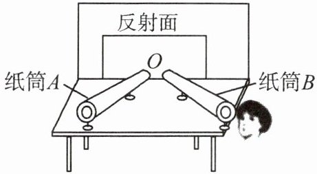 2. 物理兴趣小组的同学利用如图所示的装置,探究反射声音的强弱与充当反射面的材料是否有关。他们将发声的闹铃置于纸筒 A 内,将充当反射面的材料置于 O 处,通过纸筒 B 倾听反射的铃声强弱。