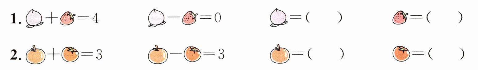 $ 🍑 + 🍓 = 4 $ $ 🍑 - 🍓 = 0 $ $ 🍑 = (