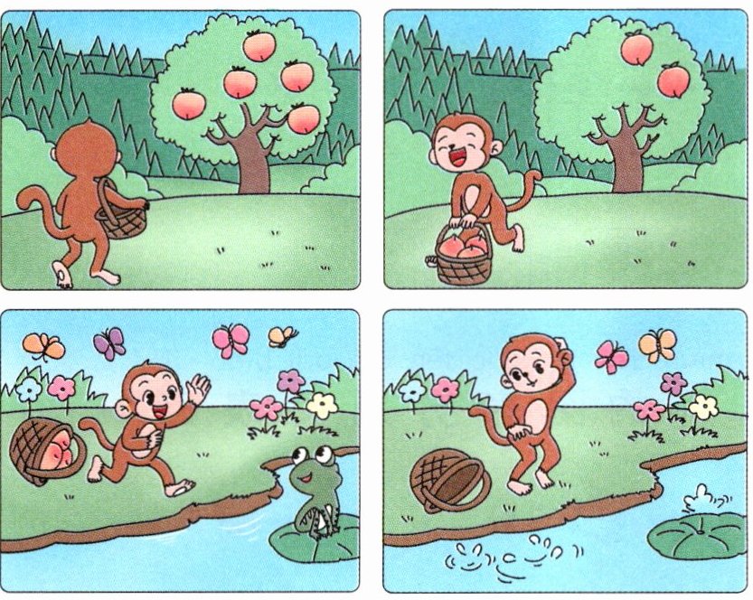 三、素养提升 小猴摘桃。看图讲故事,写一写你发现的算式。