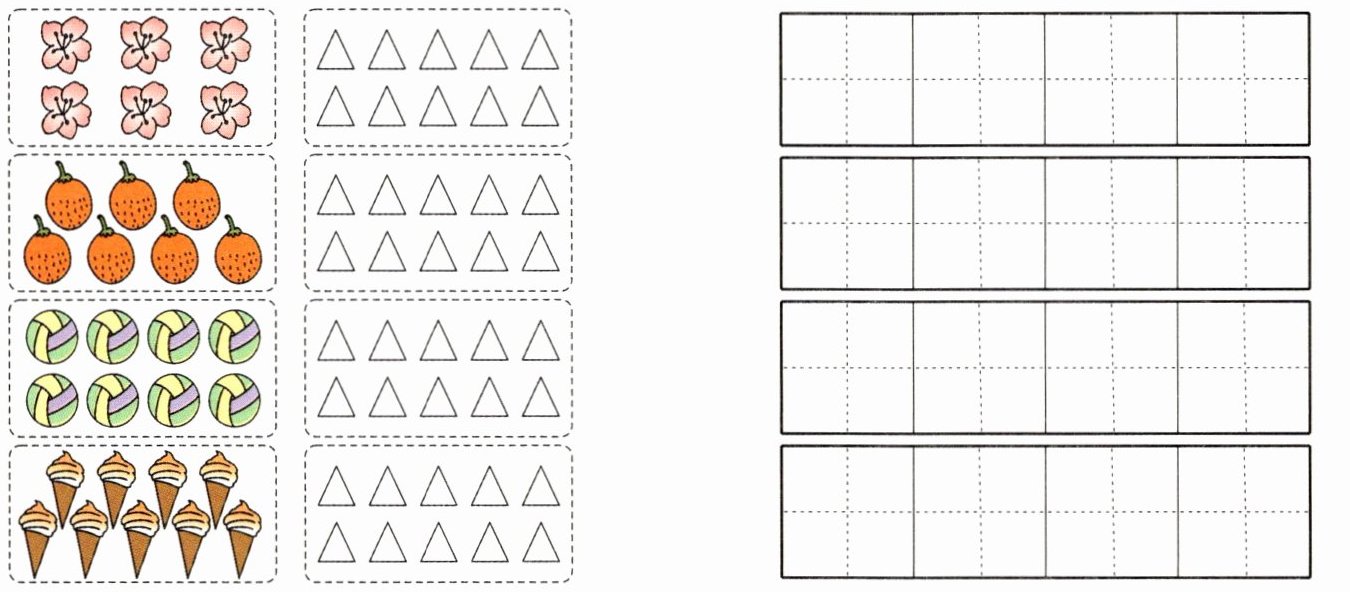 三、素养提升 下面的 应该涂什么颜色?先涂一涂,再数一数,比一比。