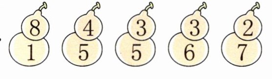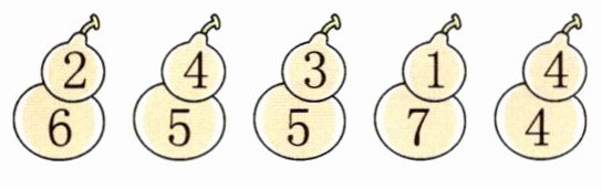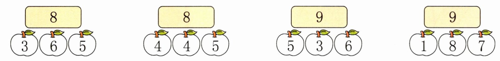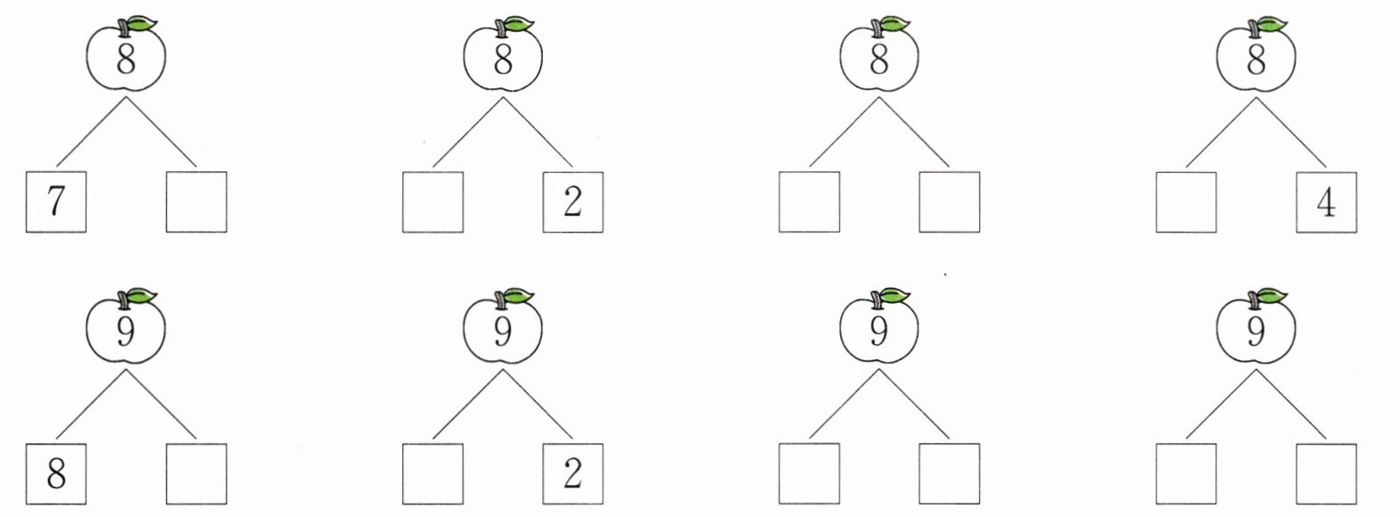 二、我能按要求涂一涂。给合起来是8的两个苹果涂上红色,是9的两个苹果涂上黄色。