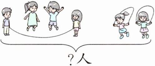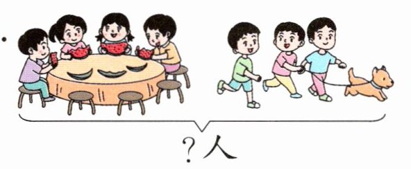 人。“$\overbrace{?人}$”表示一共有几人,要把两部分的人数合起来,用加