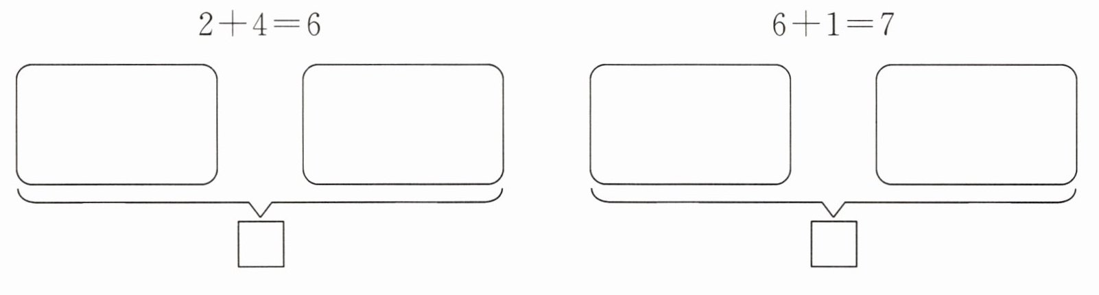 第一个算式图:左边画2个○,右边画4个○,下方括号内写6。