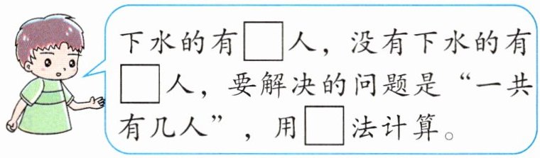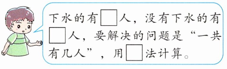 下水的有$□$人,没有下水的有$□$人,要解决的问题是“一共有几人”,用$□$法计算。