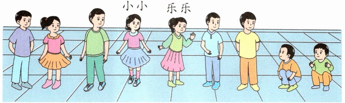 男生有$6$个,女生有$4$个,男生比女生多,一共有$10$个同学在玩游戏。小小的左边有$3$人,右边有$5$人。