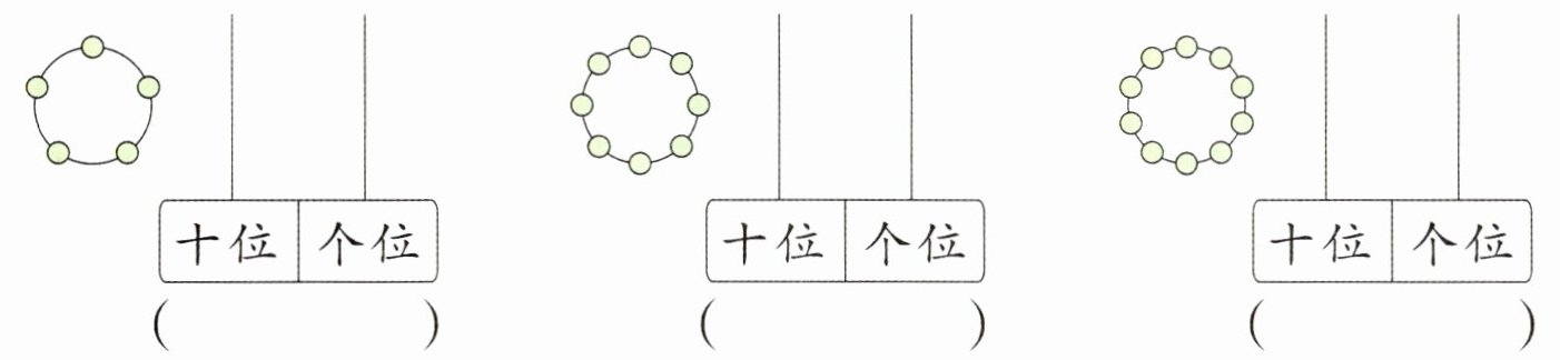 第三个图:个位上没有珠子,十位上也没有珠子,有$10$个珠子在外面,$10$是由$1$个十和$0$个一组成,写作$10$。