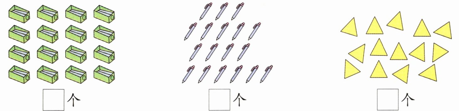 一、我来圈出10个,再接着数一数,写出一共有多少个。