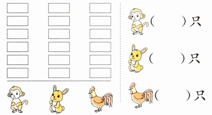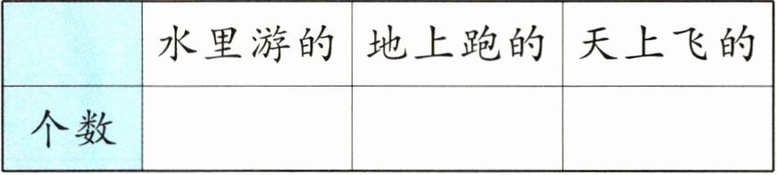1. 按动物的种类分一分,在下面涂一涂、填一填。