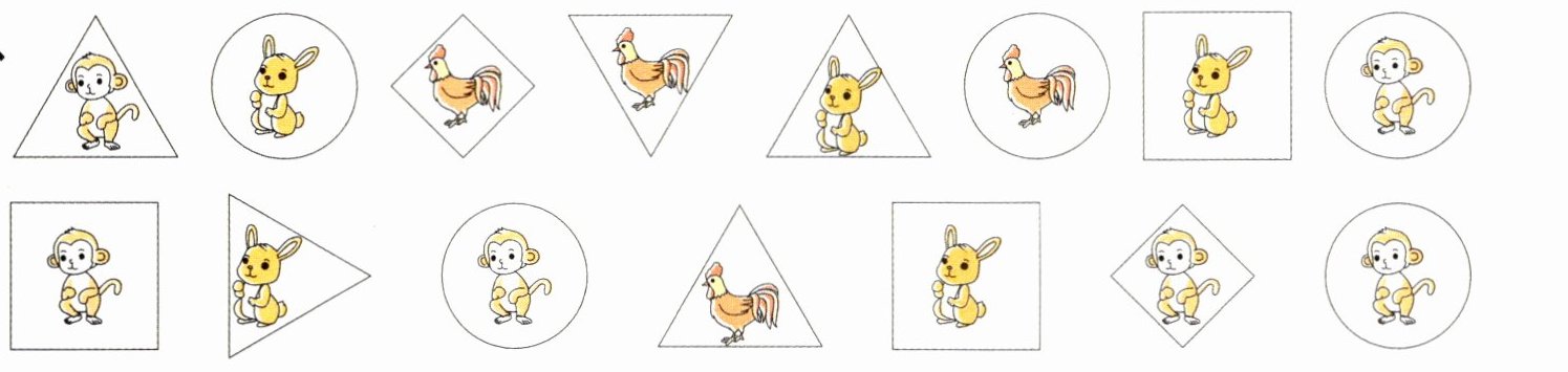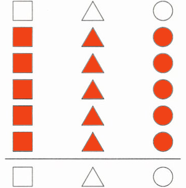 2. 按卡片的形状分一分,在下面涂一涂、填一填。