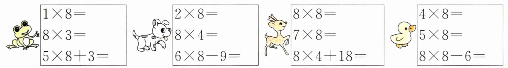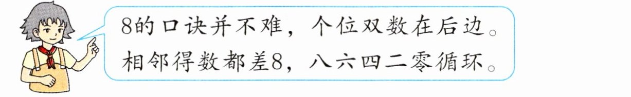 四十 5×8=40 8×5=40 五十六 7×8=56 8×7=56 六八 6×8=48 8×6=48 四八 4×8=32 8×4=32