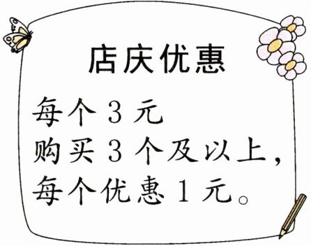 3×2=6(元) 3×(3-1)=3×2=6(元) 答:我认为妈妈应该买3个。