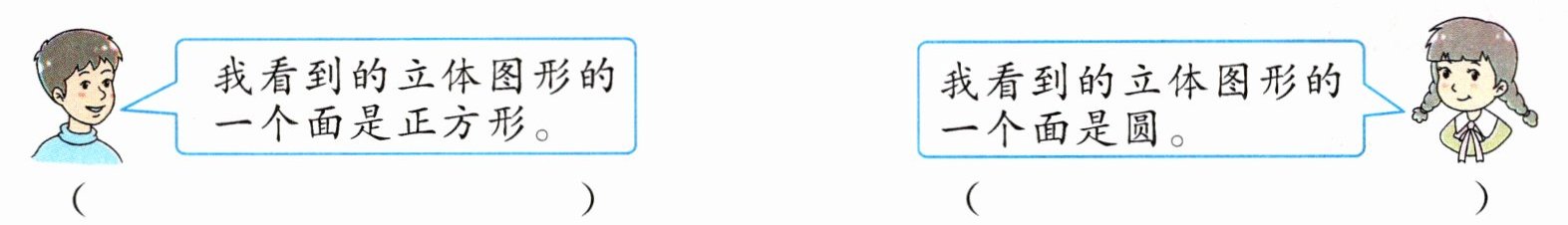三、猜一猜,他们看到的立体图形,分别可能是什么图形?
