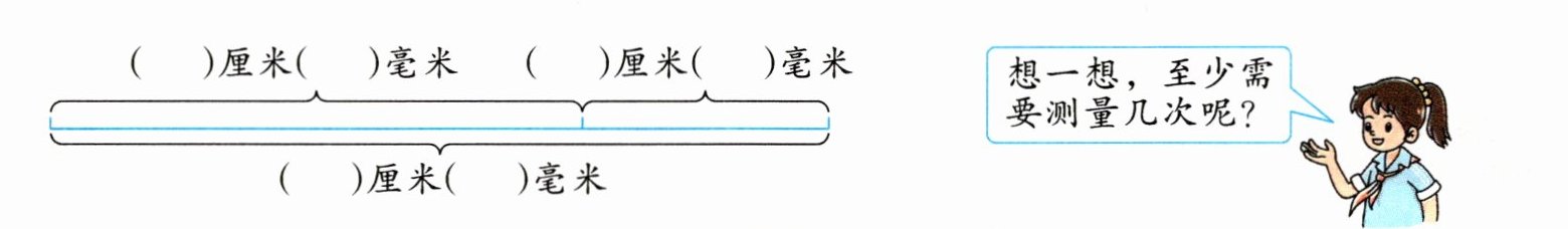 2. 因为$1\mathrm{cm} = 10\mathrm{mm}$,所以$3\mathrm{cm}=3×10 = 30\mathrm{mm}$,比3厘米短2毫米的长度为$30 - 2=28\mathrm{mm}=2\mathrm{cm}8\mathrm{mm}$。同样准备直尺,将直尺0刻度线与纸张一端对齐,找到2厘米8毫米($2\mathrm{cm}8\mathrm{mm}$)刻度位置标记点,连接纸张一端与该点,画出的线段即为所求。