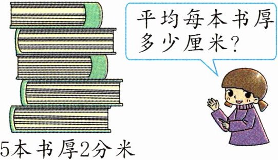 2 分米=20 厘米 20÷5=4(厘米) 答:平均每本书厚 4 厘米。