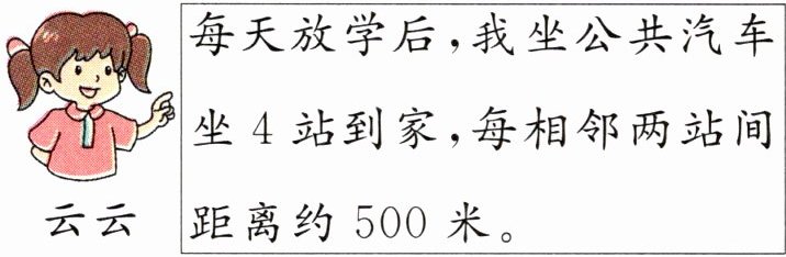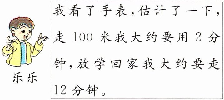 )米。★我发现:①步行时,先确定一段路程所需步数或时间再估计。②乘公共汽车时,先确定坐的站数,再估计。
