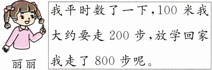 1. 芳芳100米大约要走200步,从学校到家芳芳走了600步,大约(